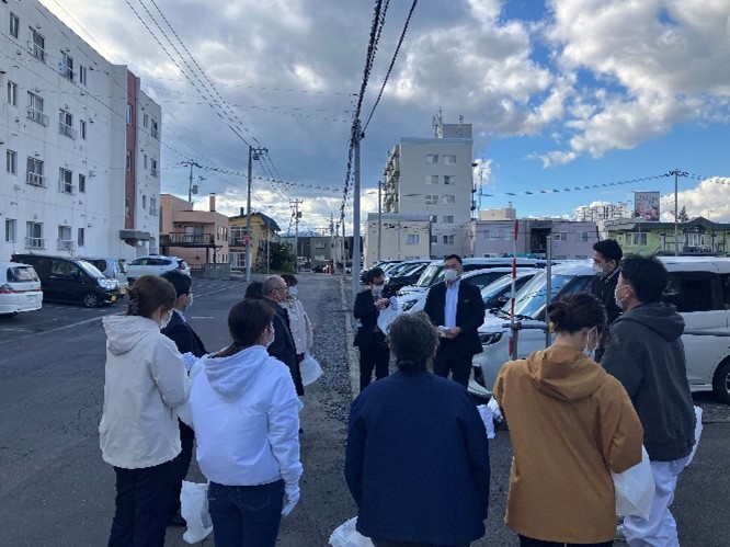 まずは初回ということで当院駐車場周辺のゴミ拾いを行いました。